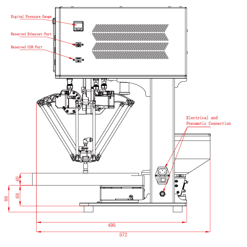 This all-in-one intelligent robot workstation integrates Delta robots, industrial cameras, and computer software. It can intelligently identify small parts and then arrange them neatly using a high-speed and precise robotic arm. It can clearly see the front and back of the parts at a glance and handle them with one hand.