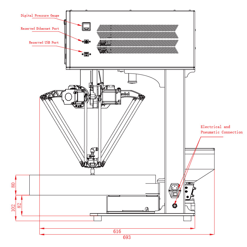 This all-in-one intelligent robot workstation integrates Delta robots, industrial cameras, and computer software. It can intelligently identify small parts and then arrange them neatly using a high-speed and precise robotic arm. It can clearly see the front and back of the parts at a glance and handle them with one hand.