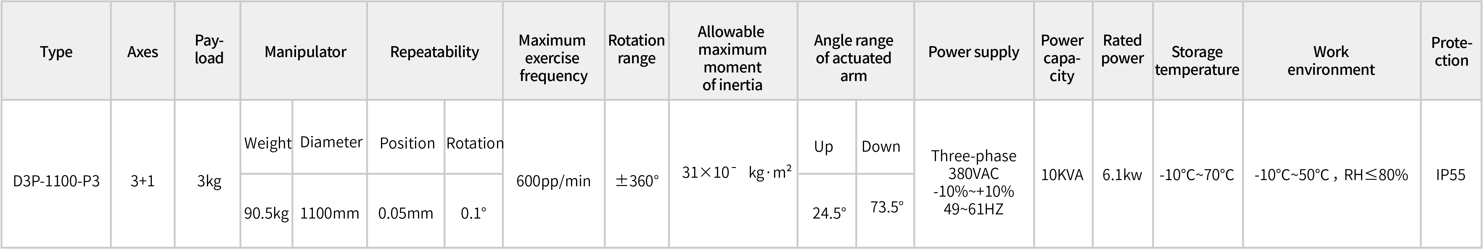 1.The standard cycle time is less than 0.4s, meeting the demand for high speed and minimum volume. 2.The special follower arm compression spring design ensures the service life of the follower arm and is easy to disassemble and assemble. 3. It is very suitable for high-speed production operations in the food, medicine and other industries, mainly used for assembly, handling, sorting, etc. of heavier materials.