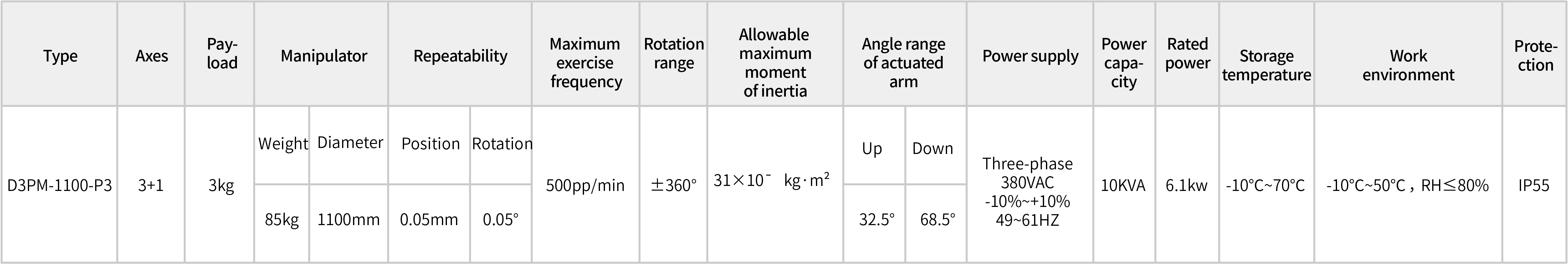 1.The standard cycle time is less than 0.4s, meeting the demand for high speed and minimum volume. 2.The special follower arm compression spring design ensures the service life of the follower arm and is easy to disassemble and assemble. 3. It is very suitable for high-speed production operations in the food, medicine and other industries, mainly used for assembly, handling, sorting, etc. of heavier materials.