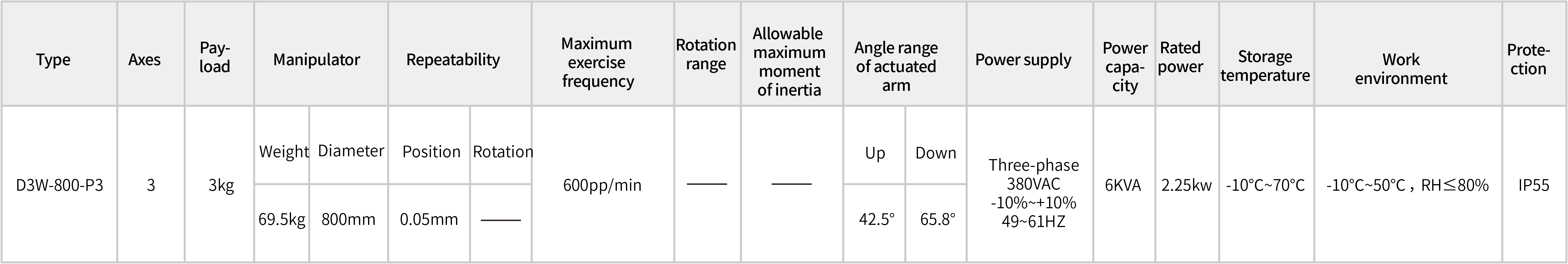 The classic high-speed parallel robot configuration has the functional characteristics of translation along the XYZ axes in three-dimensional space and rotation around the Z axis. By matching with a high-precision machine vision system, it is suitable for high-speed production operations in the food, medicine and other industries. It is mainly used for the assembly, handling and sorting of light and small scattered materials.