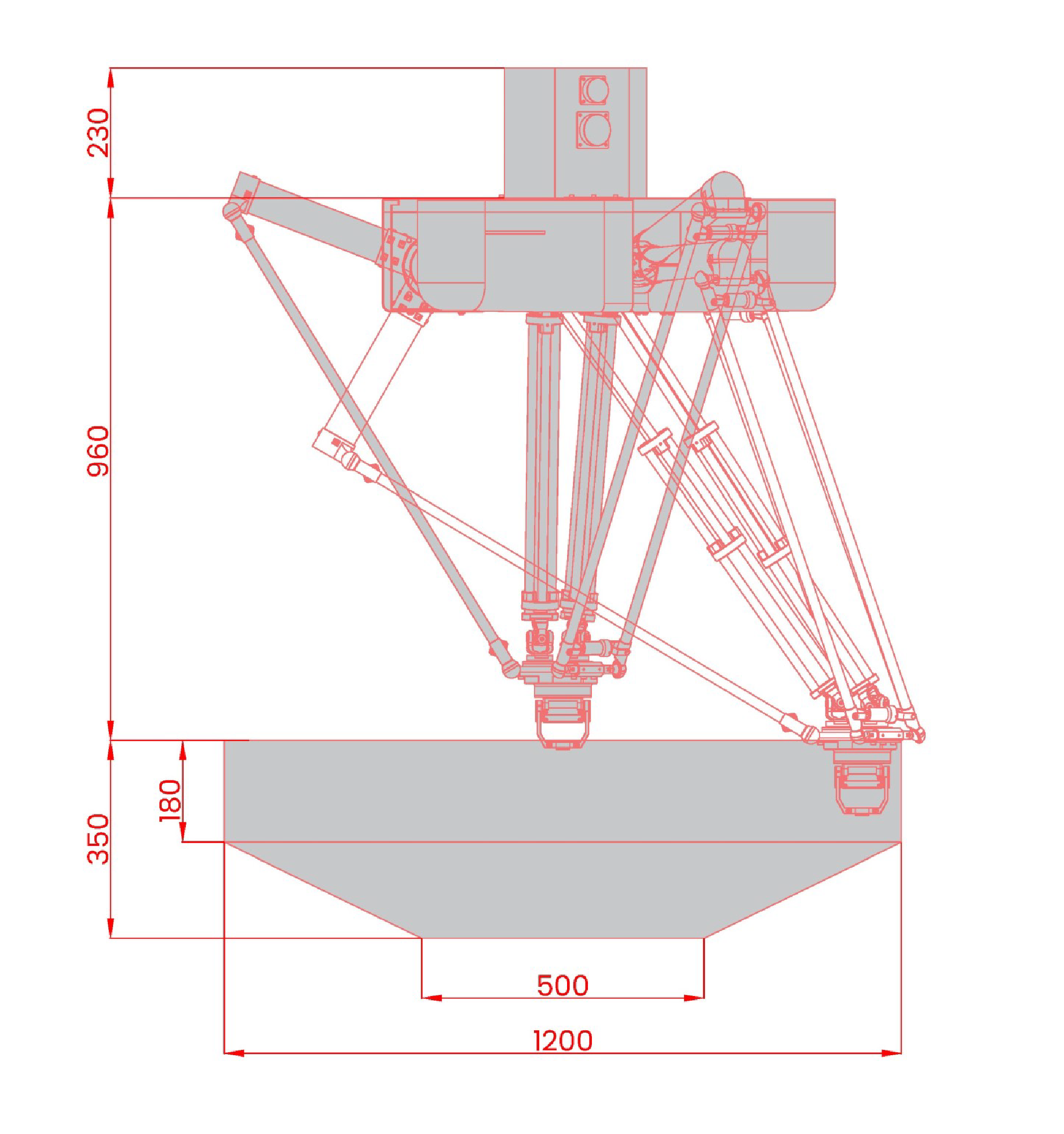 The 5-axis robot adds two parallel rotating axes based on the traditional three-axis parallel robot. One axis controls the horizontal rotation and the other axis controls the vertical rotation. The two intermediate axes are controlled by servo coupling, which has higher precision, faster speed and longer service life.