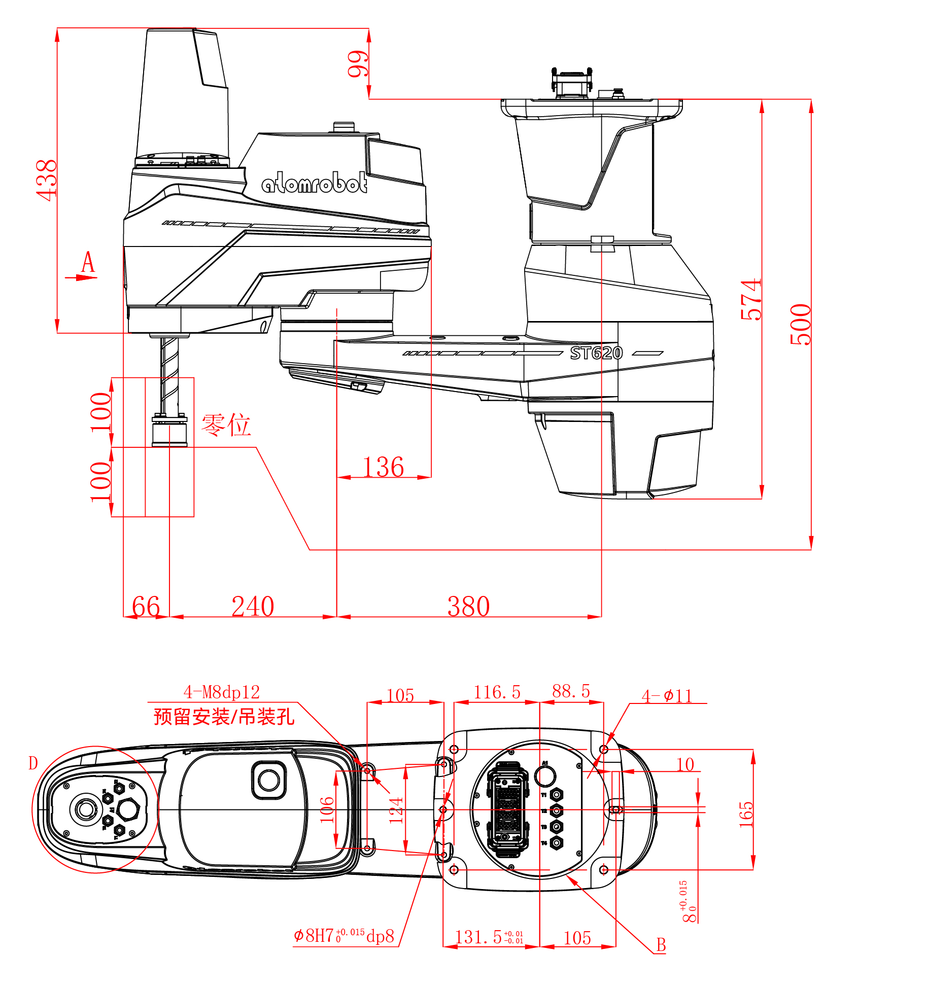ST series SCARA is a planar joint robot developed by Atomrobot for high-speed and high-precision sorting. It has four degrees of freedom in three directions: translation XYZ and rotation around the Z axis.