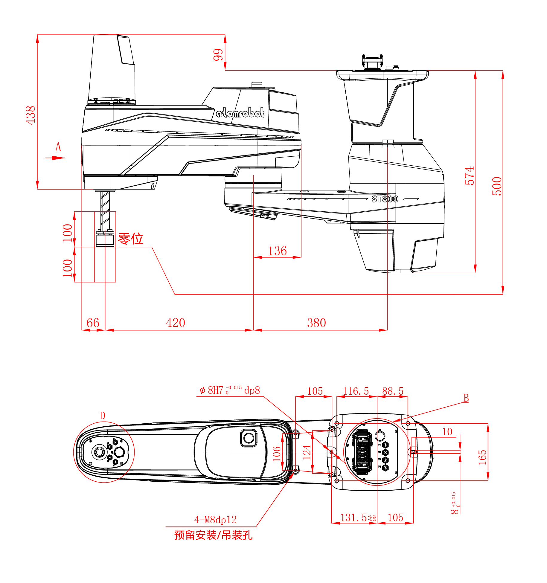 ST series SCARA is a planar joint robot developed by Atomrobot for high-speed and high-precision sorting. It has four degrees of freedom in three directions: translation XYZ and rotation around the Z axis.